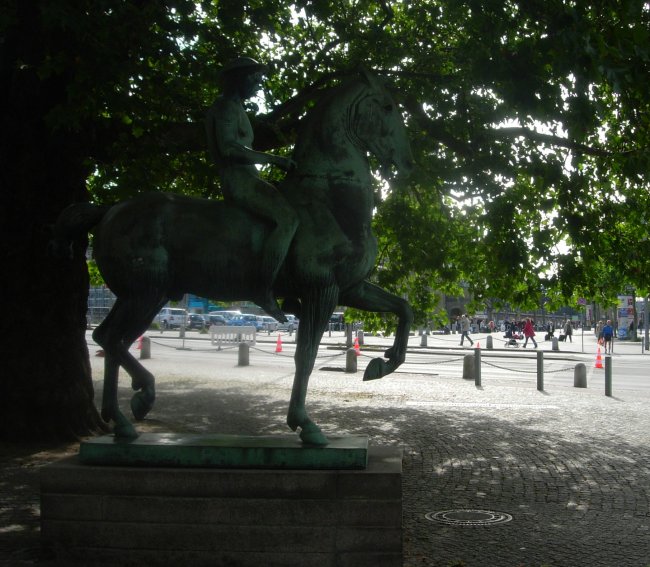Eventually we gave up on walking around town to kill time because we were too deliriously tired and just sat outside an art museum for a while. This statue was there and the dude on the horse is totally nude.